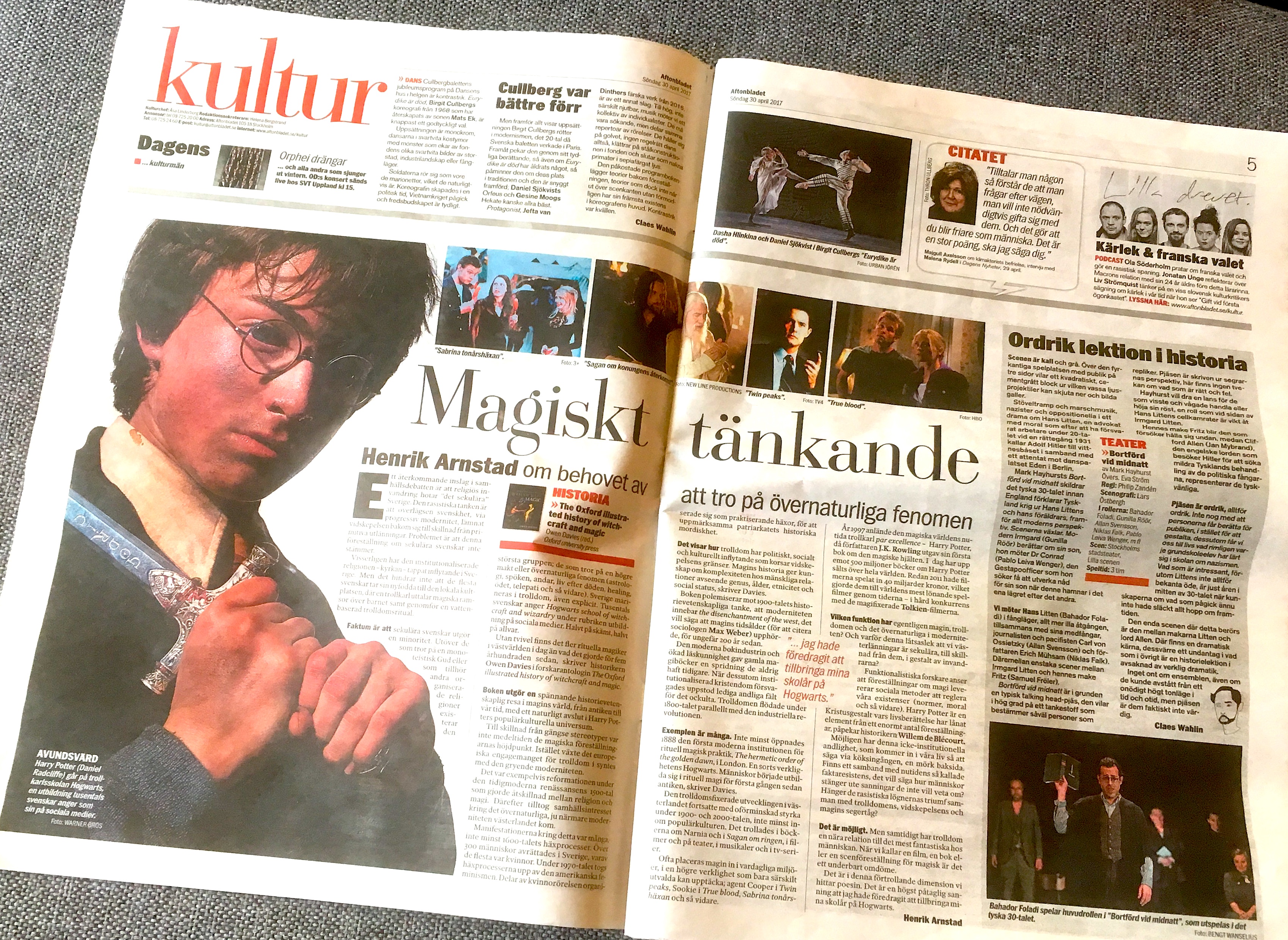 Henrik Arnstad skriver en essä på ett uppslag i Aftonbladet Kultur om nutidens vurm för trolldom, magi och övernaturlighet. Detta utifrån forskarantologin The Oxford illustrated history of witchcraft and magic (OUP).