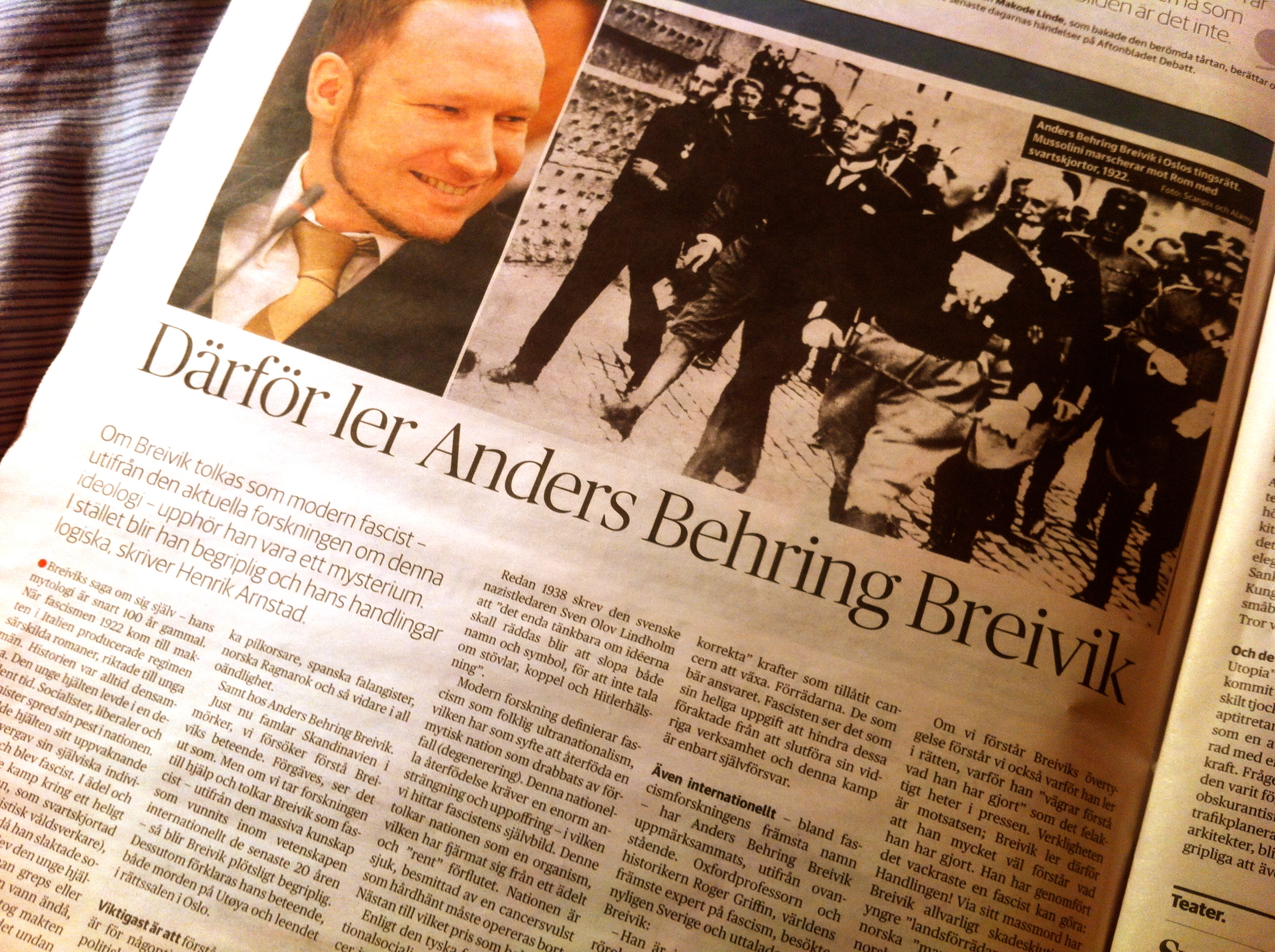 Idag publicerar Dagens Nyheter/Kultur en artikel av Henrik Arnstad, angående Anders Behring Breivik som ideologisk fascist. Responsen har varit enorm, vilket är mycket glädjande:
