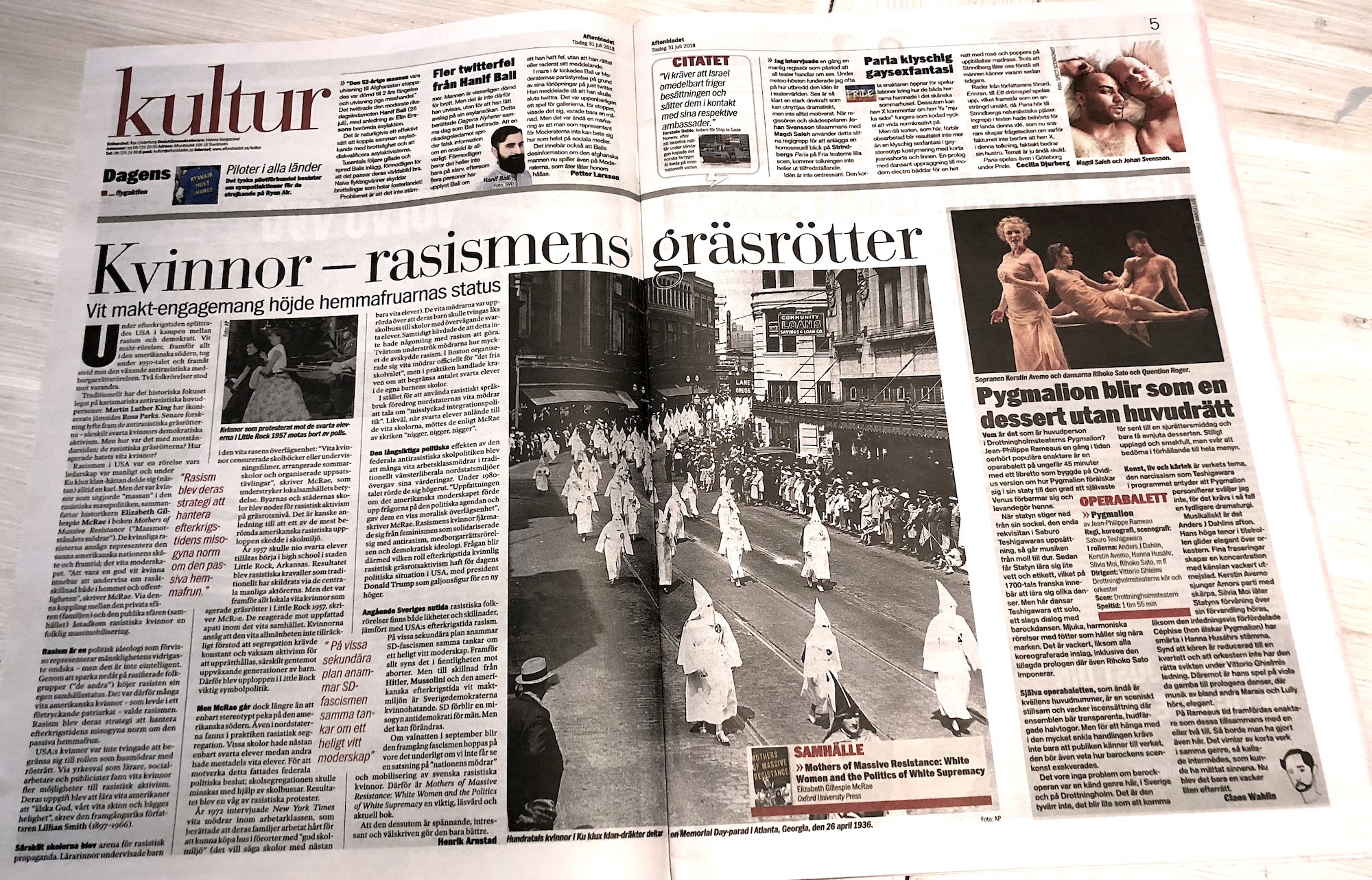 Aftonbladet kultur publicerar idag Henrik Arnstads essä ”Den kvinnliga rasismen var nationens framtid”, en text om Elizabeth Gillespie McRaes verk Mothers of Massive Resistance: White Women and the Politics of White Supremacy (Oxford University Press).