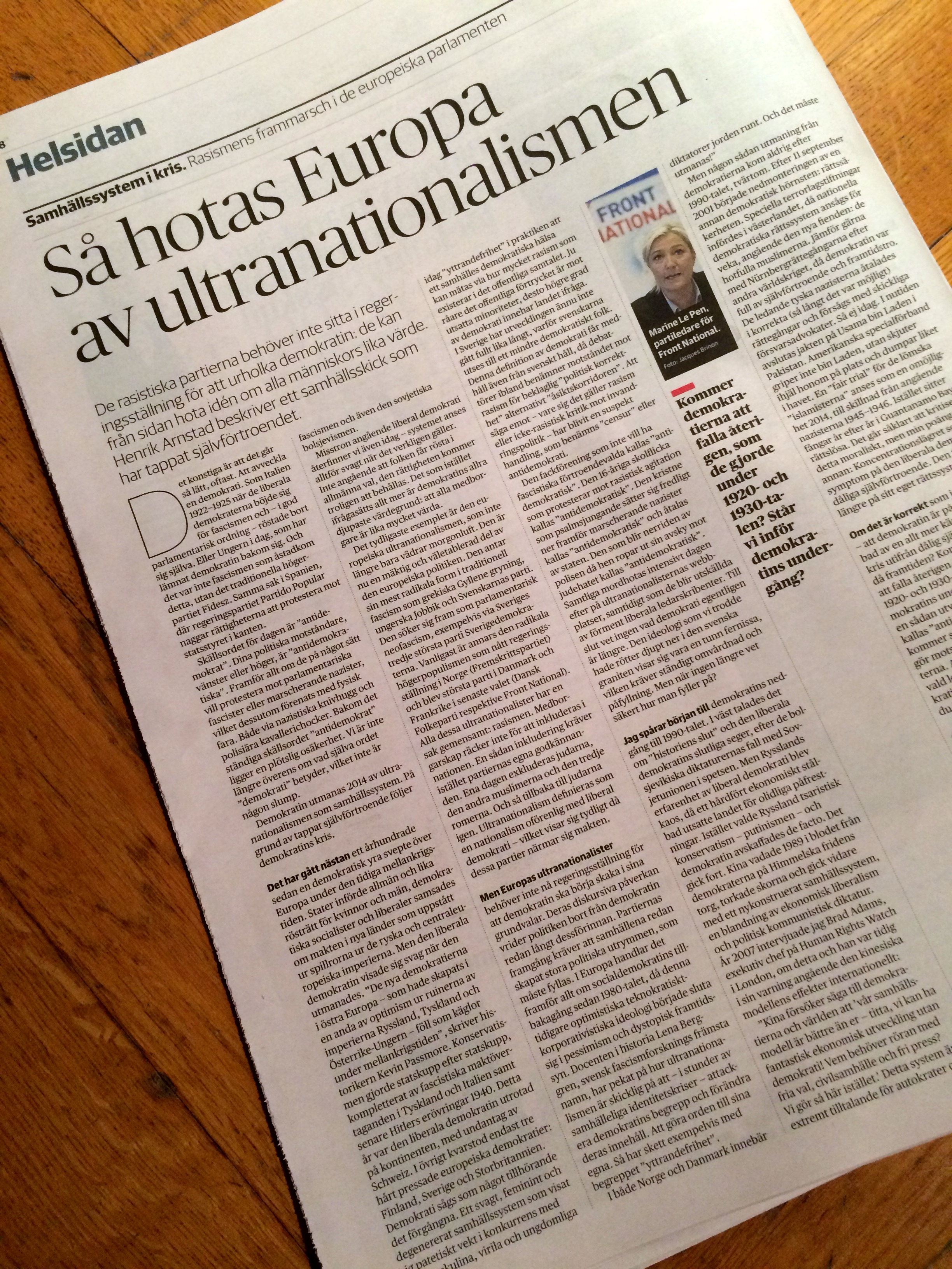 Torsdag 6 november publicerade DN Kultur en debattartikel jag skrivit, om nedmonteringen av demokratin i vår tid: