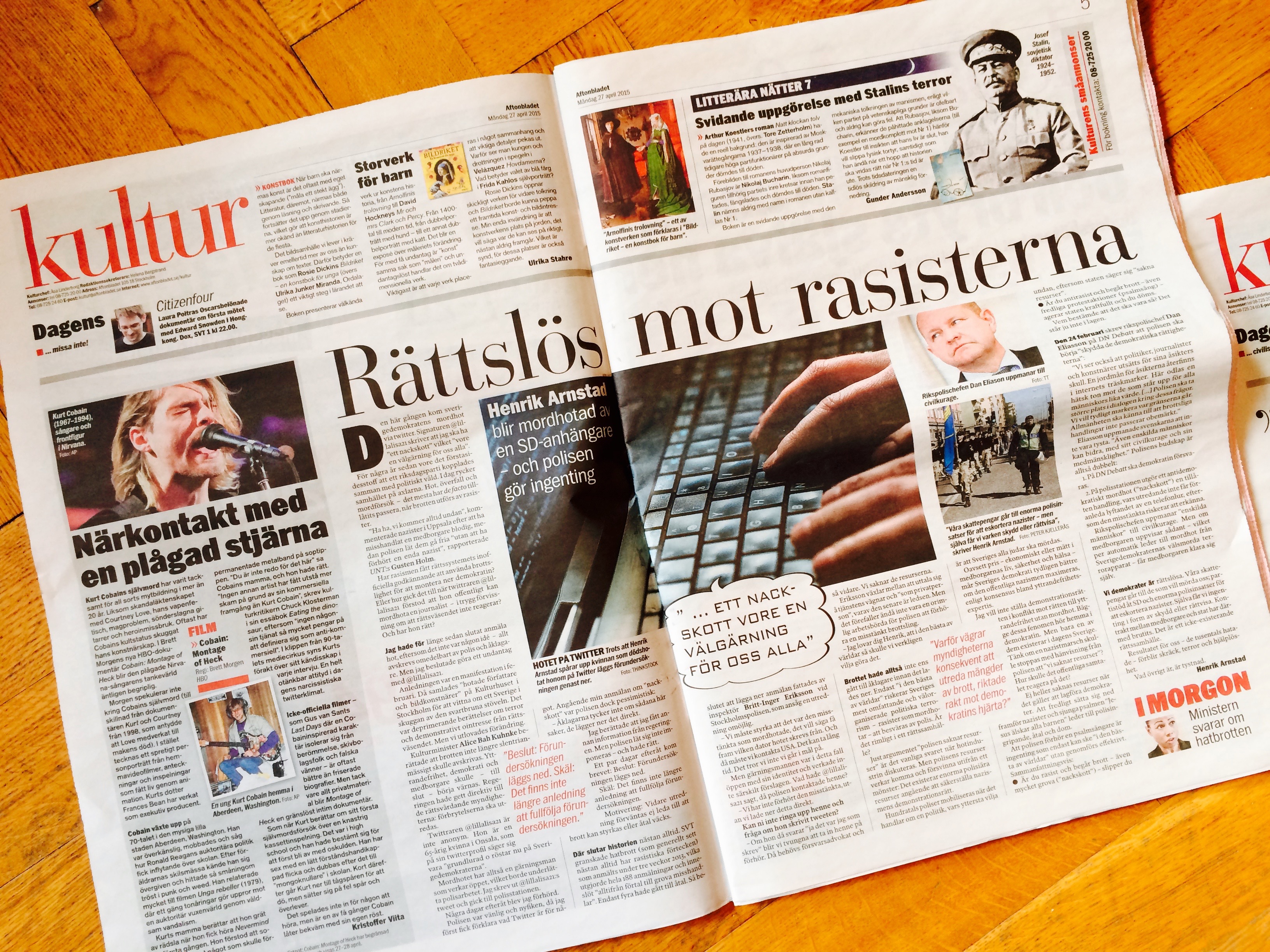 I två dagar har Aftonbladet Kultur publicerat en artikelserie av Henrik Arnstad, om den svenska rasistiska mordhotsindustrin, vars syfte är att montera ner demokratin. Och om hur rättssamhället ignorerar brottsligheten, som jag väljer att kalla politisk terrorism.